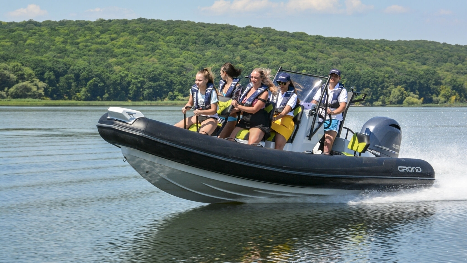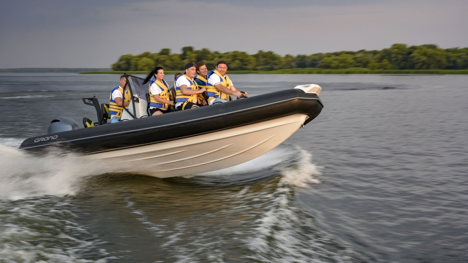 Dieses neue Modell ist das erste seiner Art in der großen Auswahl an GRAND RIBs. Der Rumpf sorgt für hohe Geschwindigkeit und Stabilität. Mit den neuen fünf einzelnen Jockeysitzen ist diese DRIVE-Version für Freunde, Familie oder Touristen geeignet. Die neuen Passagier-Jockeysitze, nach den neuesten Trends gestaltet, bleiben auf ihre einzigartige GRAND-Art gemütlich, benutzerfreundlich und stilvoll.