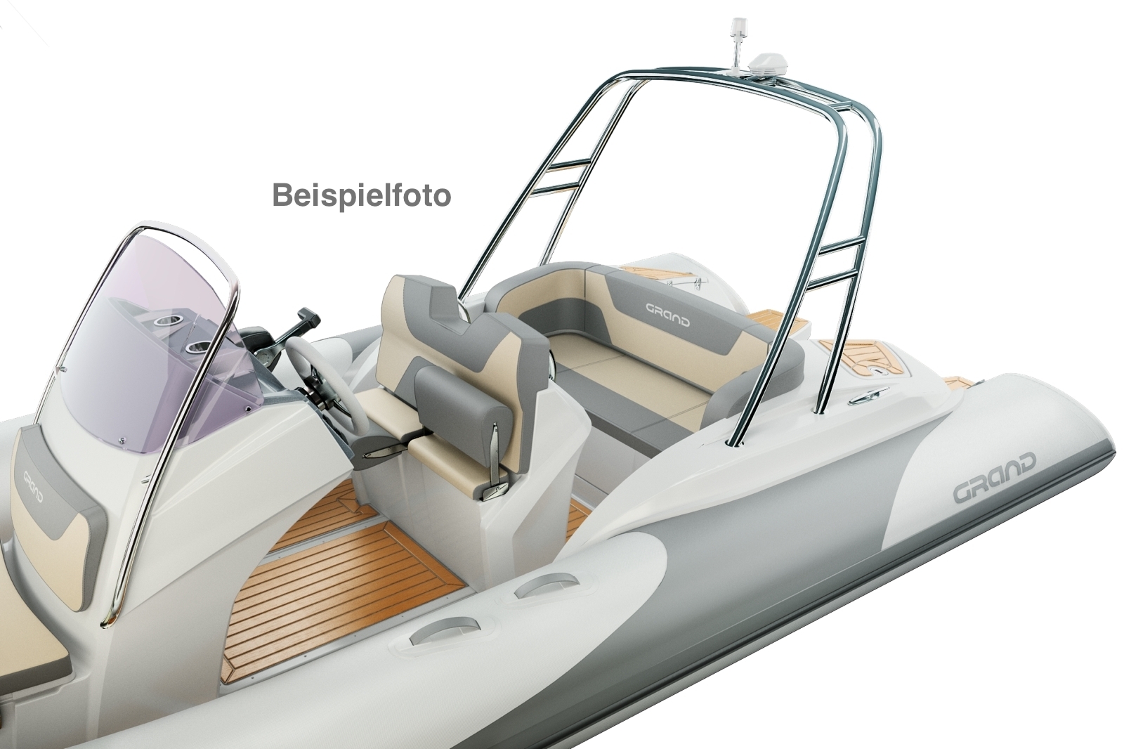 - Lenkkonsole mit Frontsitz, Windschutzscheibe, Edelstahl-Reelings, Haltegriff und Handschuhfach